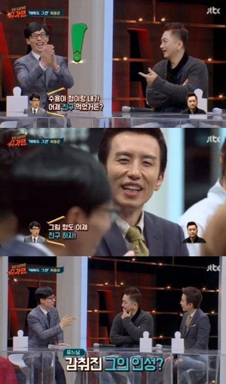 이에 최용준은 "진짜 이유는 유재석 씨 때문이다"라며, "어느 날 유재석 씨가 오더니 '형이랑 수용이 형 중에 누가 형이냐. 내가 수용이 형이랑 어제 친구 먹었다. 형도 이제 친구하자'고 했다"고 이야기했다.