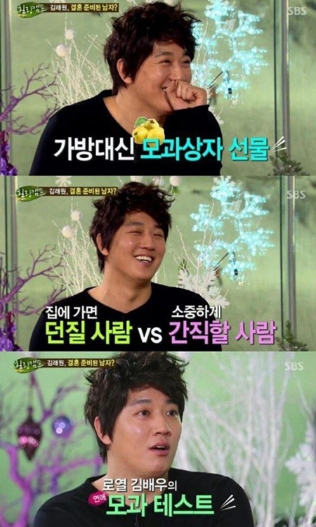 이날 방송에서 김래원은 "가방을 선물해 달라는 여자는 별로다. 저희 어머니도 그러시는데 어머니나 여자친구에게 선물로 예쁜 모과를 선물해 준다"고 말했다.