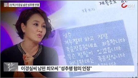 한편, 이경실 남편 최모 씨는 과거 택시에서 한 여성을 성추행 한 혐의로 법정에 올랐으며 성추행 혐의를 모두 시인한 것으로 알려져 충격을 주고 있다.