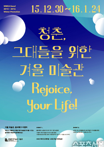 [스포츠서울 왕진오기자] 국립현대미술관(관장 바르토메우 마리)은 겨울시즌을 맞이해 특별 프로모션 ‘청춘, 그대들을 위한 겨울 미술관’을 12월 30일∼2016년 1월 24일 서울관에서 진행한다.