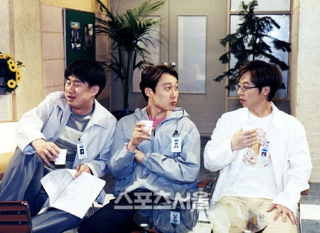 2000년부터 방송된 KBS 시트콤 '멋진친구들'에 출연한 남희석, 이휘재, 유재석. 이 시트콤에는 윤해영, 박경림, 이나영, 강래연, 박은혜 등 수많은 스타들이 출연했다.