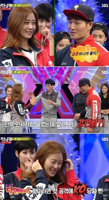 김종국은 먼저 "결혼하니까 좋아?"라고 물었고 이지현은 쉽게 대답하지 못했다. 그녀는 당황한 듯 아찔한 표정을 지어보였고 다들 놀라서 어쩔 줄 몰라했다. 이지현의 첫 위기가 온 것.