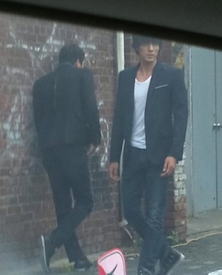 사진 속 소지섭은 흰 티셔츠에 재킷을 걸친 채 편안한 청바지를 입고 있다. 평상복 차림이지만 긴 다리와 넒은 어깨가 돋보여 의류 광고를 보는 듯한 느낌을 준다.
