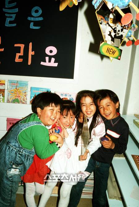 [1987년 다른 아역배우들과 함께 찍은 모습]