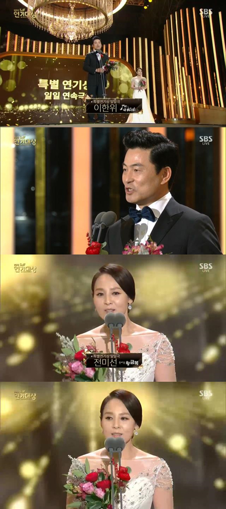 [스포츠서울] '2015 SBS연기대상' 이한위와 전미선이 일일극 부문 특별 연기상을 받았다.