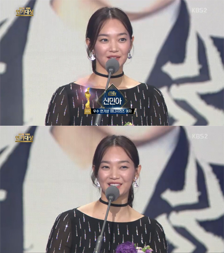 이날 미니시리즈 부문 우수연기상은 '오 마이 비너스'에서 77kg 분장을 하고 열연한 신민아에게로 돌아갔다.