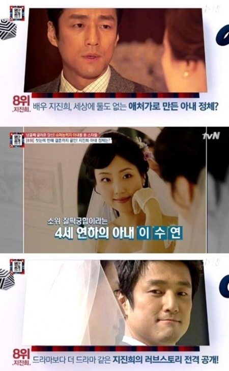 이날 지진희는 슈퍼능력자 아내를 둔 스타들 8위에 올랐다. '세상에 둘도 없는 애처가'라는 지진희는 "첫눈에 반해서 아내와 결혼했다"고 고백했다.