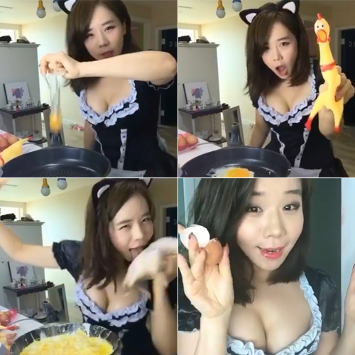 이어 생닭을 들고 퍼포먼스를 펼치던 중 프라이 팬을 바닥에 떨어뜨렸고, 날달걀을 먹은 뒤 야릇한 표정을 지어 눈길을 끌었다.