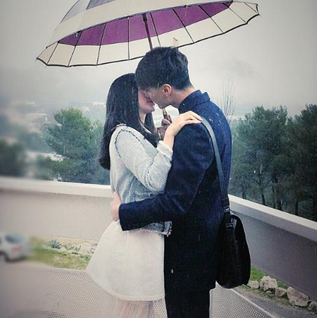 당시 공개한 사진은 홍수아가 중국드라마 '온주두가족' 속 상대역과 빗속 키스신을 찍은 모습으로 눈길을 끌었다.