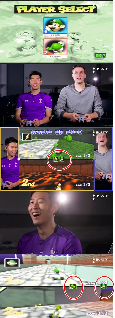 영상에서 손흥민은 케빈 비머와 카트 레이싱 게임 '마리오 카트'를 즐겼다. 손흥민은 요시 캐릭터를, 케빈 비머는 루이지 캐릭터를 선택했다.