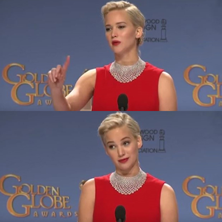 이 기자를 지켜보던 로렌스는 "휴대폰 뒤에 살지 말라"며 손가락질했다. 이어 기자는 "오스카에선 어떨 것 같냐"는 질문을 던졌고, 로렌스는 "오늘은 골든글로브다. 당신이 휴대폰만 안 봤더라도 알 일"이라며 기자의 태도를 지적해 논란이 일었다.