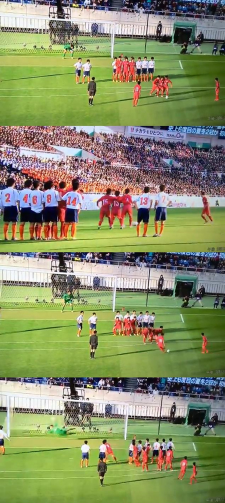 [스포츠서울] 일본의 한 고등학교 축구 대회에서 나온 획기적인 프리킥 방법이 화제를 모으고 있다.