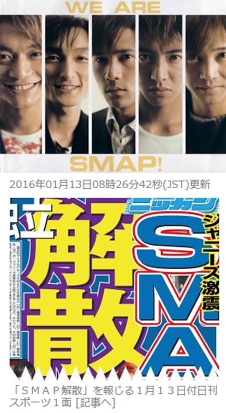 사진=닛칸스포츠, 야후재팬 캡처, SMAP 홈페이지 캡처
