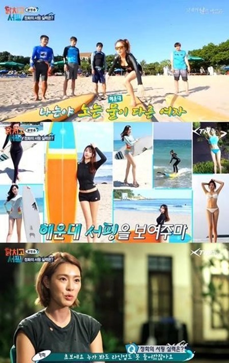 지난해 10월 방송된 XTM '닭치고 서핑'에서는 예정화가 발리에 도착해 서핑에 도전하는 모습이 그려졌다.