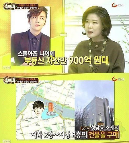 이날 방송에서 백현주 기자는 "장근석이 29살인데 지금 부동산 자산만 900억 원대다"라며 "2011년에 청담동 소재의 지하 2층~지상 6층의 건물을 구매했는데, 당시 85억 원 정도였던 건물이 지금 시세로는 한 110억 원 정도 된다"고 말문을 열었다.