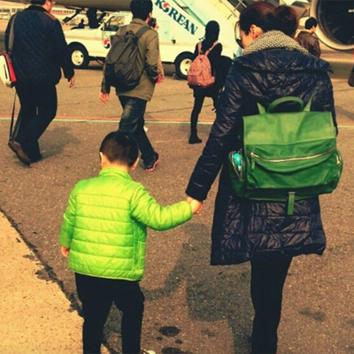 송윤아가 공개한 사진 속엔 아들 승윤 군과 비행기 탑승을 위해 걸어가고 있는 모습이 담겼다.