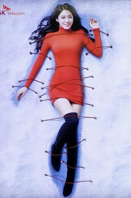 최근 SK텔레콤은 밧줄에 묶인 설현을 담은 광고 포스터를 제작했다.