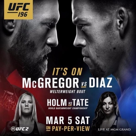 한편, 코너 맥그리거와 네이트 디아즈의 웰터급 경기가 열리는 UFC196은 오는 3월 6일 오전 11시 30분 부터 생중계된다.