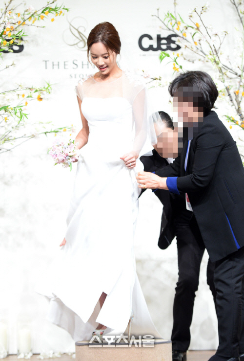 [스포츠서울] 배우 황정음이 26일 오후 서울 중구 신라호텔에서 진행된 결혼식에 앞서 취재진 앞에서 포토타임을 갖고 포즈를 취하고 있다.