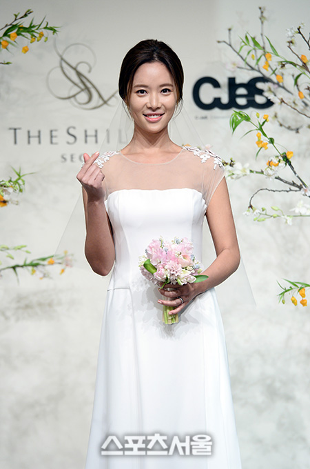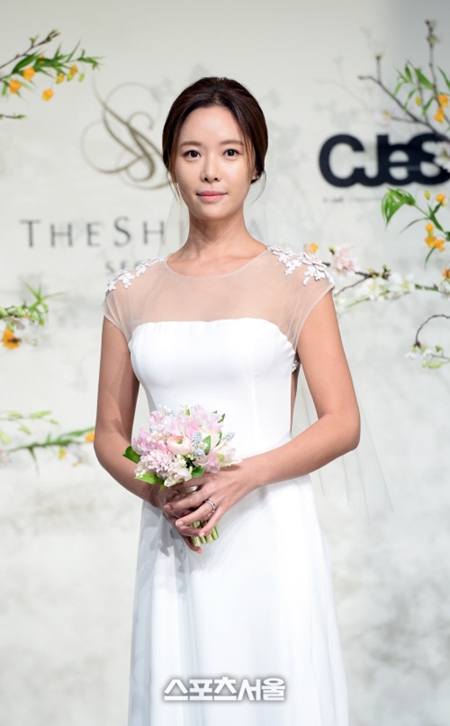 이날 황정음은 본식에 앞서 열린 기자회견에서 눈부신 웨딩드레스 자태를 뽐냈다. 어깨라인에 시스루를 덧대어 청순한 매력을 더했다.