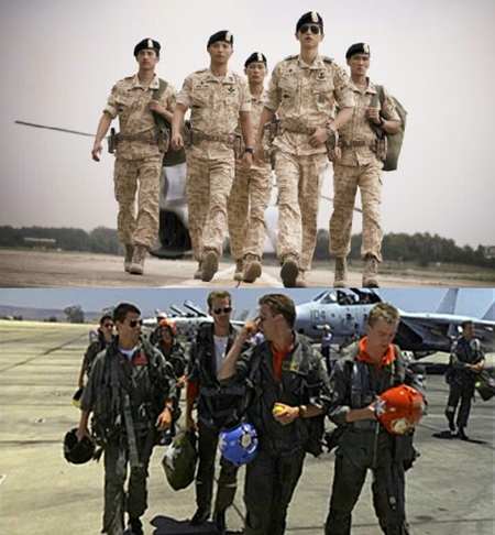 특히 이 장면은 1987년 개봉한 영화 '탑 건(Top Gun)'의 톰 크루즈(매버릭 대위 역)를 연상시켜 또 다른 매력 포인트로 작용한다. 2회 마지막 장면이 나간 뒤 "송중기의 선글라스, 톰 크루즈 저리가라다", "송중기, 선글라스 끼니 상남자다" 등등 뜨거운 반응이 일었다.