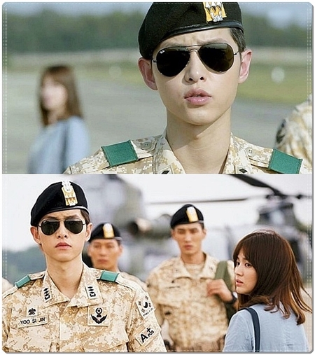 극중 송중기(유시진 역)는 여심을 사로잡는 로맨틱한 대사로 안방극장을 달달함으로 물들이고 있다. 여기에 또 하나의 포인트, 제복과 선글라스 패션으로 '유시진 신드롬'을 몰고 왔다.