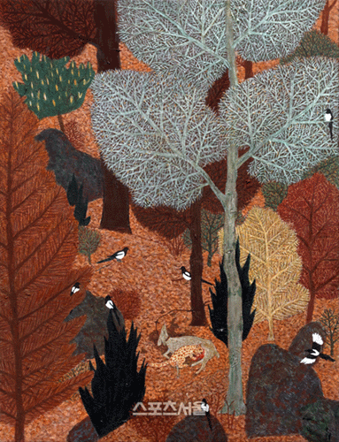 ▲문성식, '숲의 내부'. 35 x 27cm, 캔버스에 아크릴, 2015.