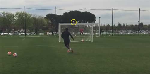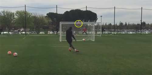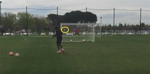 해당 동영상을 살펴보면 드로그바는 골대 앞에 미니 골대를 세워둔 채 프리킥 연습을 하고 있다.