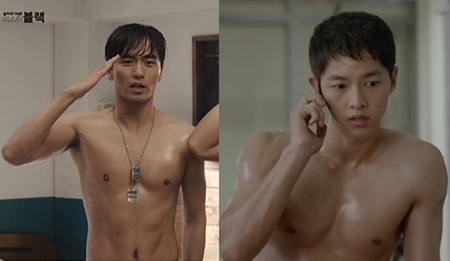 동시간대 방송 중인 KBS2 '태양의 후예'에서 역시 송중기가 몸매를 드러내 눈길을 끌었다. 앞서 제작발표회에서 송중기는 "평소 몸을 가꾸는 데 큰 비중을 두는 배우는 아니었지만 캐릭터를 봤을 때 당연히 몸 관리를 해야 한다고 생각했다"고 털어놨다.