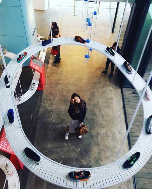 특히 벽과 바닥에 그려진 그림 작품을 배경으로 사진을 찍으며 한껏 상기된 모습이다.