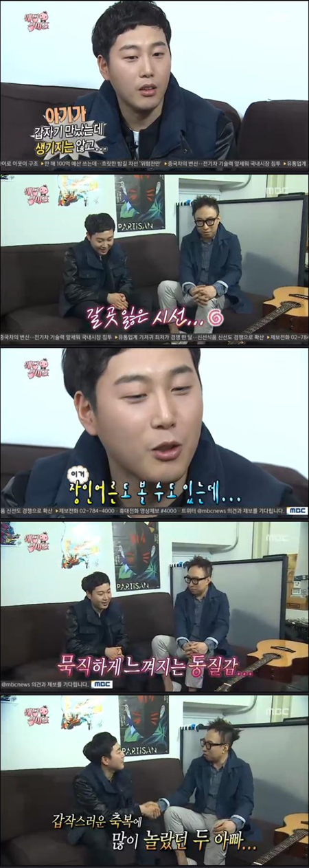 장범준은 "아이가 생겨서 결혼을 하게됐다"며 속도위반 사실을 고백했다. 그러자 박명수는 갑작스런 고백에 당황하며 장범준과 멍하게 바닥을 쳐다봤다.