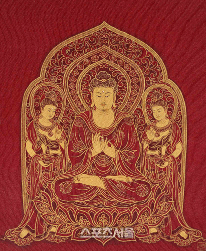 광물질의 안료 위에 뜨거운 불 위에서 곱게 갠 금가루를 아교에 섞어 가장 빛나는 부분을 그려 넣으면 비로소 긴 여정의 불화그리기는 끝을 낼 수 있는 것이다.