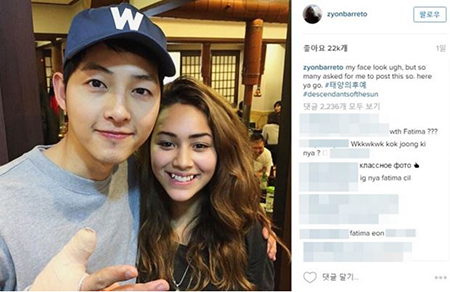 이날 송중기의 팬 인스타그램에는 해당 사진을 게재하면 자이온의 짧은 인터뷰도 올렸다.
