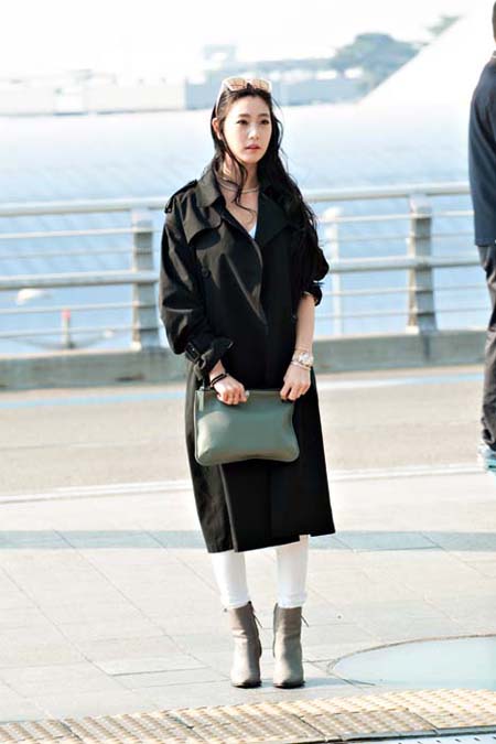 클라라는 지난 28일 해외 촬영차 인천공항을 출국하던 당시 블랙 롱 트렌치코트로 완벽한 패션을 선보여 공항패션 정점을 찍었다.