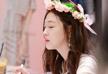팬사인회에서 화보 찍는 연예인은 얼마나 될까? 머리에 꽃 화관을 쓴 설리는 분홍색 꽃잎 같은 핑크빛 피부 톤이 마치 여신이 강림한 듯 물오른 미모를 뽐냈다. 여기에 자연스러운 내추럴 웨이브 헤어에 화려한 듯한 이어링까지 '청순' 그 자체였다.