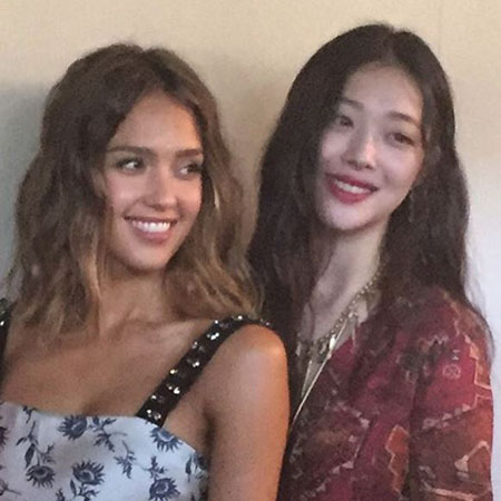 지난해 미국 뉴욕에서 열린 한 패션 브랜드 행사장에 참석한 설리. 공개된 사진 속 설리와 제시카 알바는 민소매 의상과 빨간 드레스를 입고 나란히 서서 환한 미소를 띠며 어딘가를 응시하고 있다. 이 가운데 설리는 제시카 알바와 비교해도 밀리지 않는 아름다운 미모를 자랑하고 있어 눈길을 끈다.