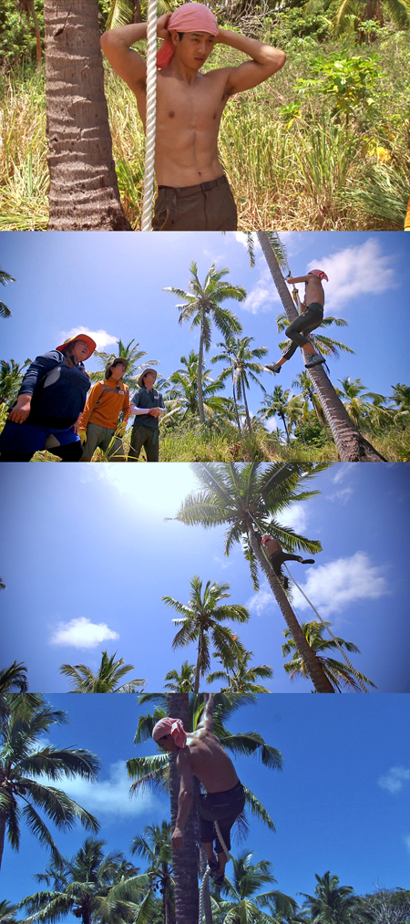 오는 1일 방송되는 SBS ‘정글의 법칙 in 통가’에서는 ‘정글의 법칙’ 사상 최초로 밧줄을 타고 코코넛을 따기에 도전한다.
