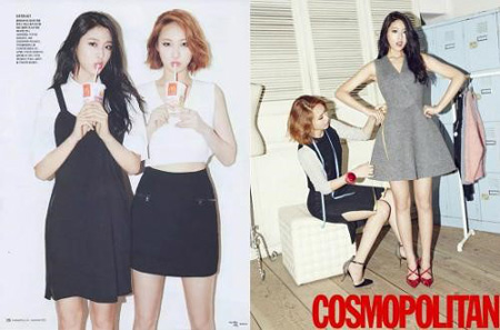 과거 공개된 코스모폴리탄 화보 속 설현은 언니와 의상을 고르고 있는 모습과 함께 음료를 마시고 있는 장면을 연출했다.