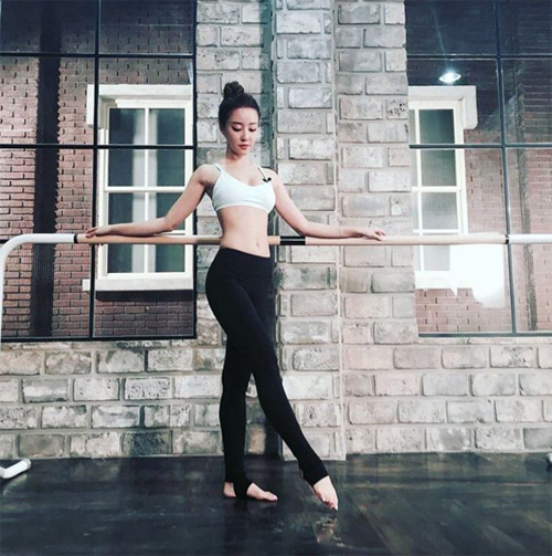 해당 사진 속 고우리는 발레바 앞에서 도도한 표정을 한 채 발레 동작을 취하고 있다.