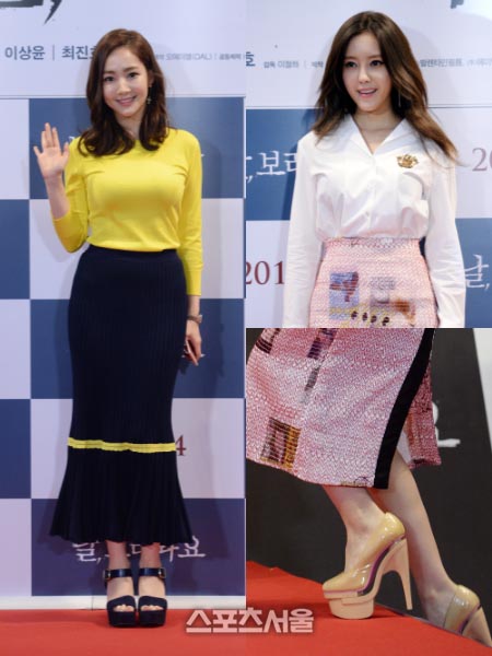 걸그룹 티아라 효민과 박민영은 무릎 아래로 내려오는 펜슬스커트로 보디 라인을 강조한 것은 물론 고급스러운 룩을 연출했다. 특히 박민영은 긴 길이의 남색 주름 펜슬스커트에 화사한 옐로 컬러 티셔츠로, 효민은 하얀 브이넥 셔츠에 핑크빛 스커트로 봄 분위기를 냈다.