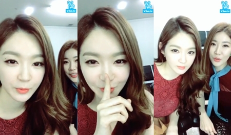 다비치는 8일 포털 사이트 네이버 'V앱' 채널을 통해 깜짝 생방송을 진행했다.