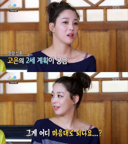 100회 특집으로 김민정, 유선 등과 함께 출연한 한고은은 식사를 마친 뒤 이야기를 나눈 자리에서 2세 계획에 대한 질문을 받았다.