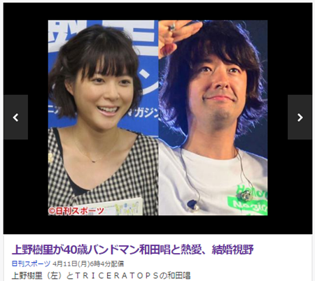 일본 다수의 매체는 11일 우에노 주리와 와다 쇼가 6개월째 열애 중이라고 보도했다. 보도에 따르면 이들은 결혼까지 고려하고 있는 상황.