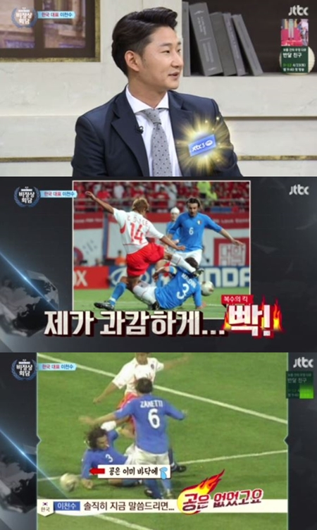 이에 이천수는 "2002년 한일월드컵 16강 전에서 이탈리아 선수들이 많이 거칠었고 깔보는 부분이 있었다"라고 말문을 열었다.