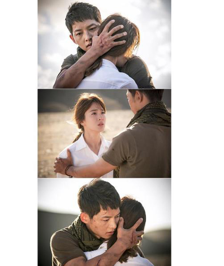 14일 '태양의 후예' 공식 인스타그램에는 극중 강모연(송혜교 분)과 유시진(송중기 분)의 재회 장면이 게재됐다.