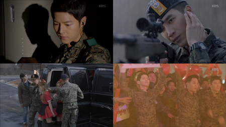 ‘유시진 신드롬’을 일으키며 많은 화제를 모은 KBS2 수목드라마 ‘태양의 후예(이하 태후)’가 지난 14일 방송된 16회를 끝으로 종영했다. 아직 스페셜편이 남아있기는 하지만, 공식적인 내용전개는 끝났다. 그동안 그들만의 개그코드로 긴장감 속에 웃음을 더해 보는 재미를 만들었던 ‘태후’는 마지막 회에서도 ‘태후’식 개그코드로 종영의 아쉬움을 달랬다.