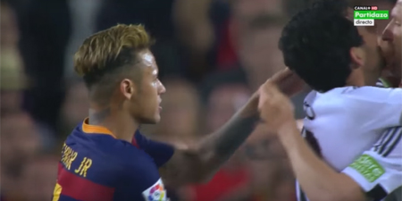 바라간과 발렌시아 선수들은 네이마르에 거칠게 항의했지만 이 장면은 심판에게 목격되지 않았다.