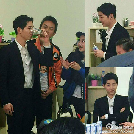 21일 시나연예 공식 웨이보에는 "국민 남편 송중기, 오늘 출근 사진"이라는 글과 촬영에 열심인 송중기의 모습이 공개됐다.