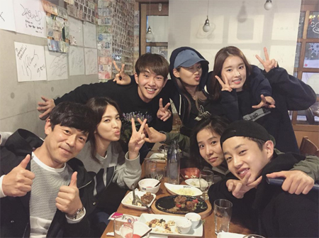 사진 속에는 '태양의 후예'에서 의료 팀으로 열연을 펼쳤던 송혜교를 비롯한 배우들이 한자리에 모여 있는 모습이다. 배우들은 모두 활짝 웃으며 저마다 브이 포즈를 하며 유쾌한 분위기를 드러냈다.