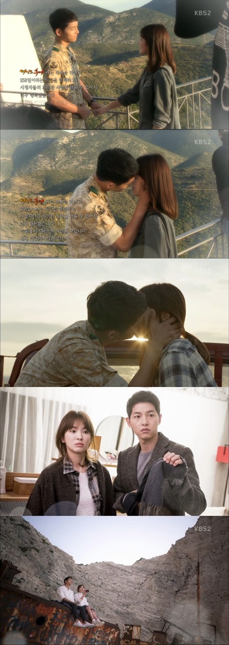 22일 방송된 KBS2 ‘또 만나요 태양의 후예 스페셜’에서는 메이킹과 NG 영상을 비롯해 출연진들과 제작진이 털어놓는 비하인드 장면 등이 전파를 탔다.